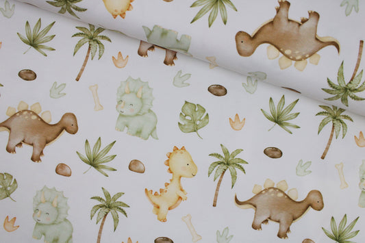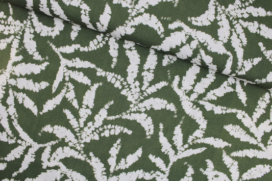 Viskosestoff Molveno Blätter - oliv/wollweiß