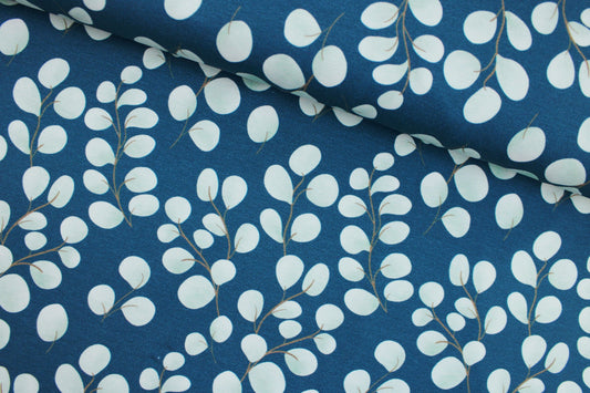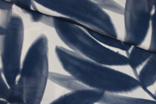 Batist-Baumwolle Grenoble Blätter - wollweiß/dunkelblau