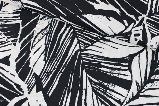Viskosestoff Garda Blätter - ecru/schwarz