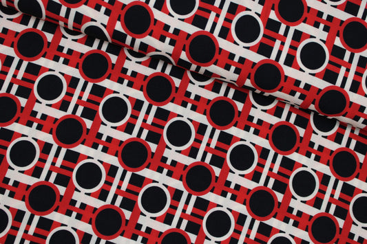 Viskosestoff Tamara Retromuster rot/schwarz/beige