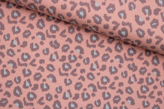 French Terry Sweat Leoprint - apricot/hellgrau