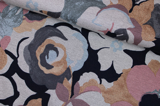 Jacquardjersey Bari Blumen - altrosa/schwarz/beige