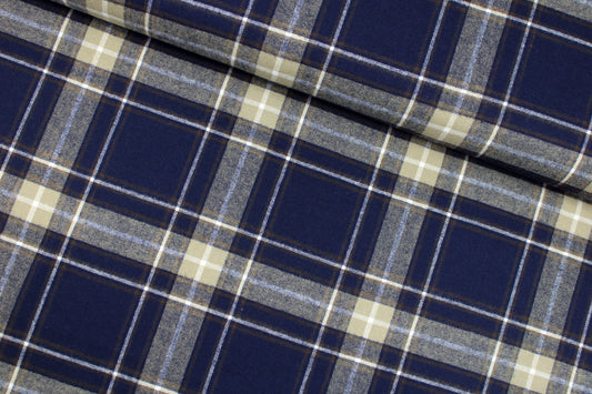 Flanellstoff Maverick Karos - dunkelblau/braun