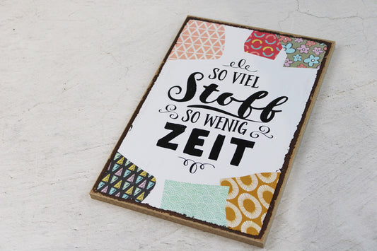 Holzschild "So viel Stoff, so wenig Zeit"
