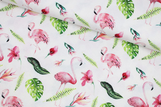 Rippjersey Mia Flamingos - weiß/pink/grün