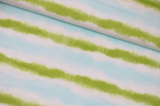 Sweatstoff Refresh Stripe Batikstreifen - grün/hellblau/weiß