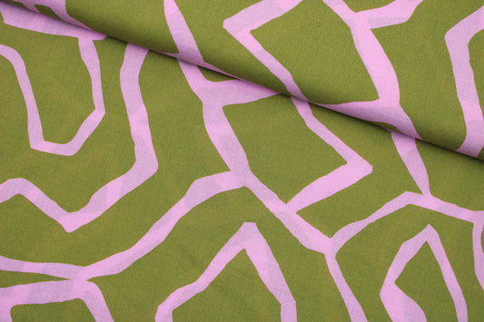 Viskosecrepe Jessi abstrakte Linien - pink/beige