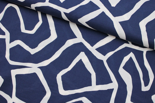 Batist-Baumwolle Verona Linien - dunkelblau/ecru