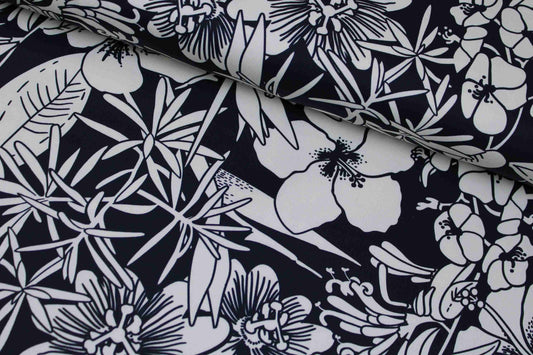 Baumwollstretch Bloom Blumen - schwarz/weiß
