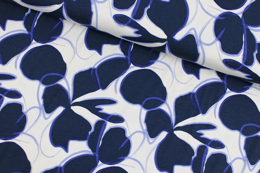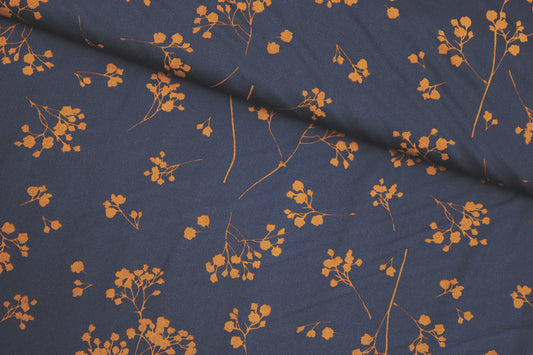 125cm RESTMENGE Viskose Twill Stalks Blümchen - indigo night