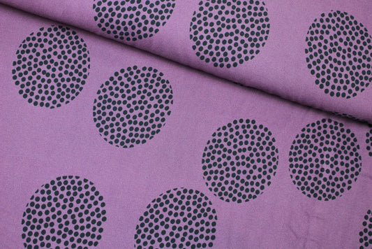 100cm RESTMENGE Viskosecrepe Sabi Kreise - lila/dunkelblau