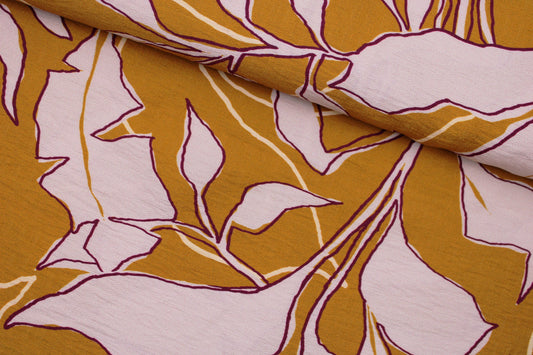 Baumwollstretch Blätter abstrakt - ocker/oliv/schwarz
