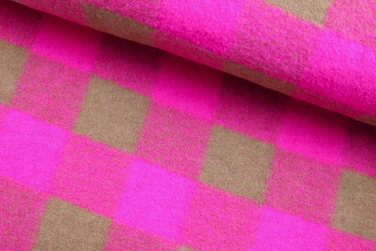 Wollwalk große Karos - neonpink/braun