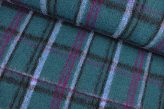 Wollgemisch Petara große Karos - petrol/lila